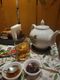 - С самоваром идет: черный и зеленый заварной чай, ароматные травы (летом свежие), лимон, сахар, наше домашнее варенье, сушки.