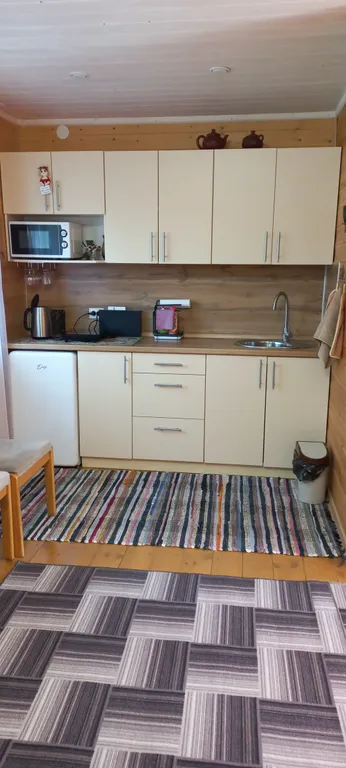 - В кухне есть всё необходимое для приготовления и приёма пищи: стол, кухонные принадлежности, варочная панель, холодильник, чайник, посуда. Предоставляются чай, кофе, специи, соль, сахар, подсолнечное масло.